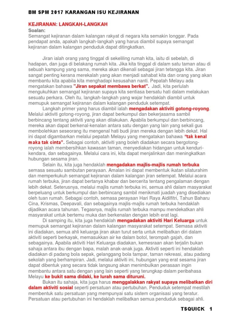 Contoh Karangan Bahasa Melayu Spm 2017 : Karangan Spm